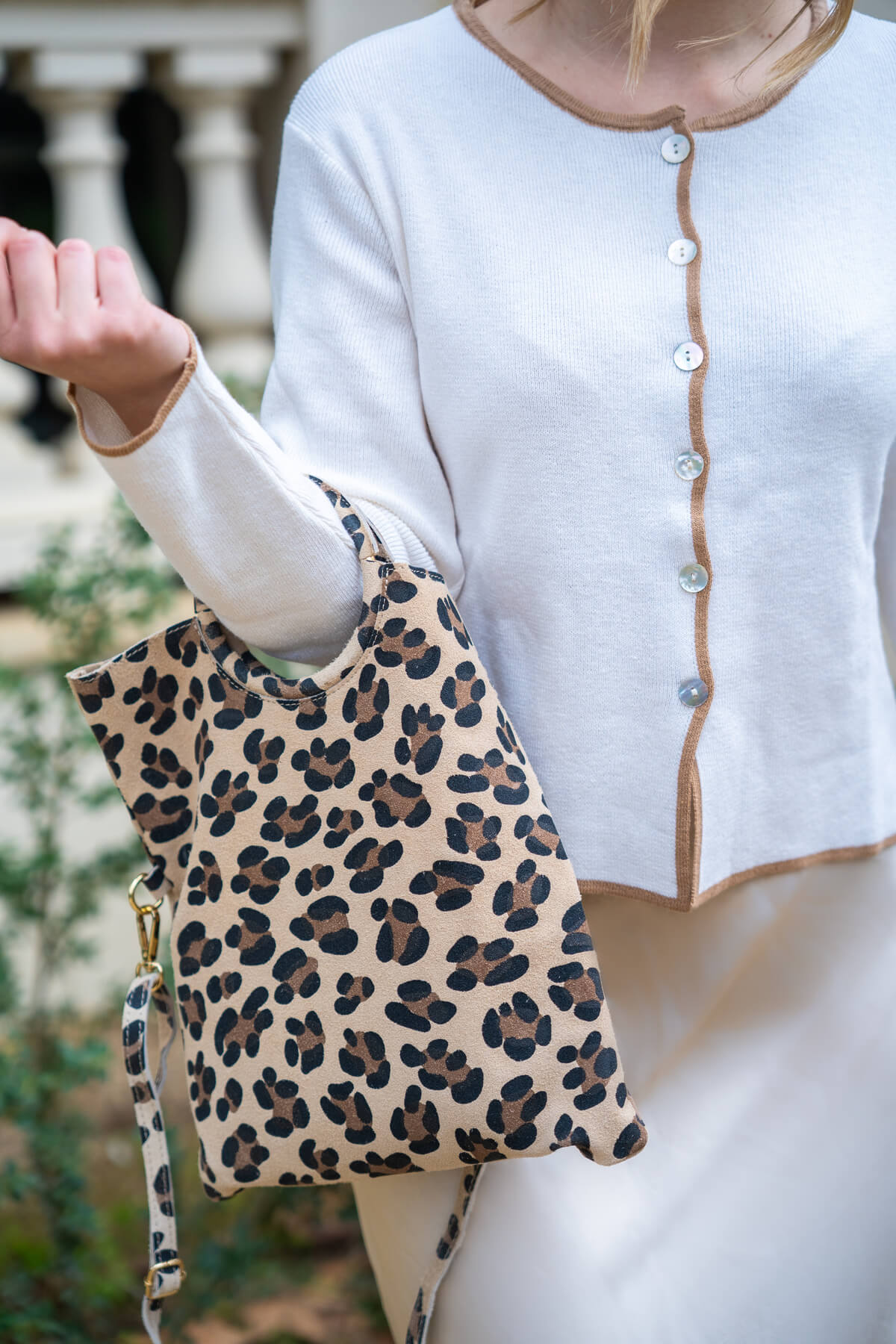 Su diseño destaca por el contraste sutil: los ribetes en tono camel bordean el escote, los puños y la tapeta con una línea precisa que estiliza y resalta la silueta. Los botones nacarados aportan un toque luminoso y femenino, elevando aún más su elegancia natural.