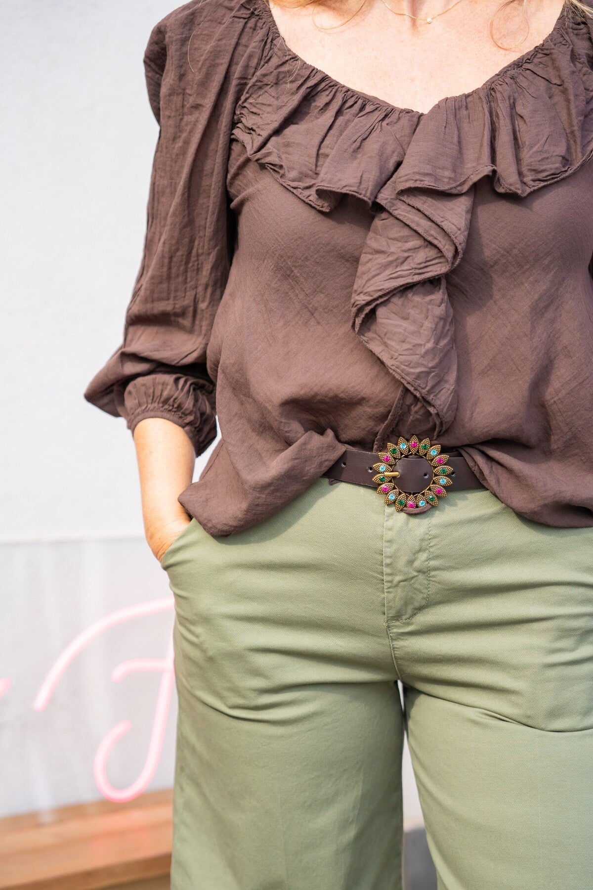 La Blusa Con Volantes es esa prenda que transmite delicadeza sin esfuerzo. Una pieza versátil, luminosa y femenina, pensada para mujeres que buscan estilo con alma y prendas que hablen de ellas con naturalidad.